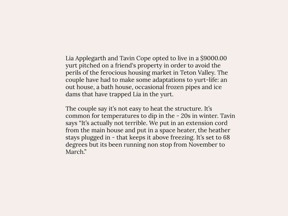 Sea Marie Biladeau and Devin Pool’s yurt at night.